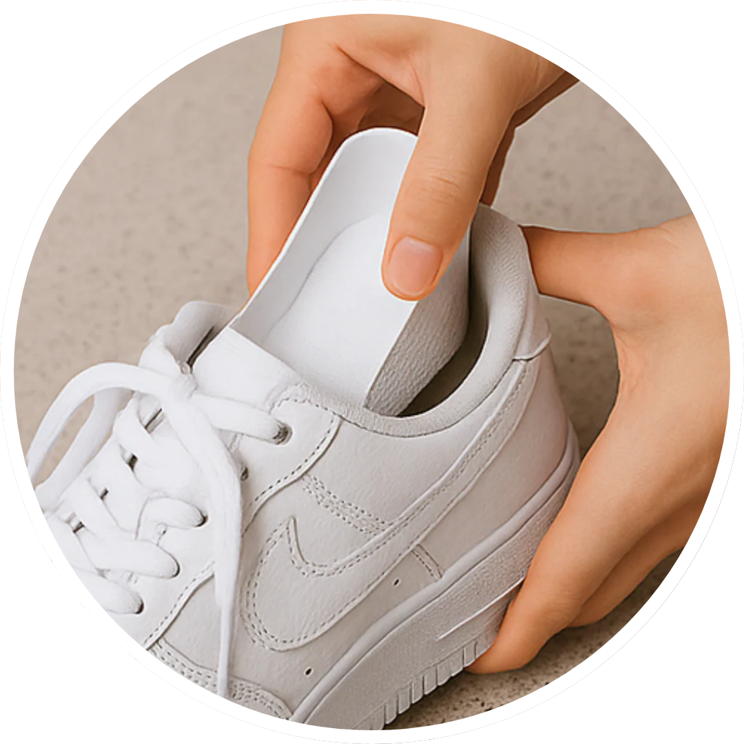 Place at the backs of your shoes, your Inchmaxxers will mould to the inside of your shoes perfectly.